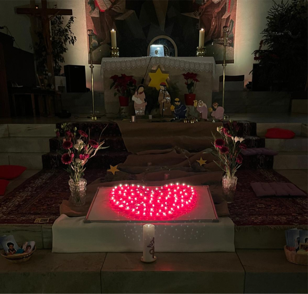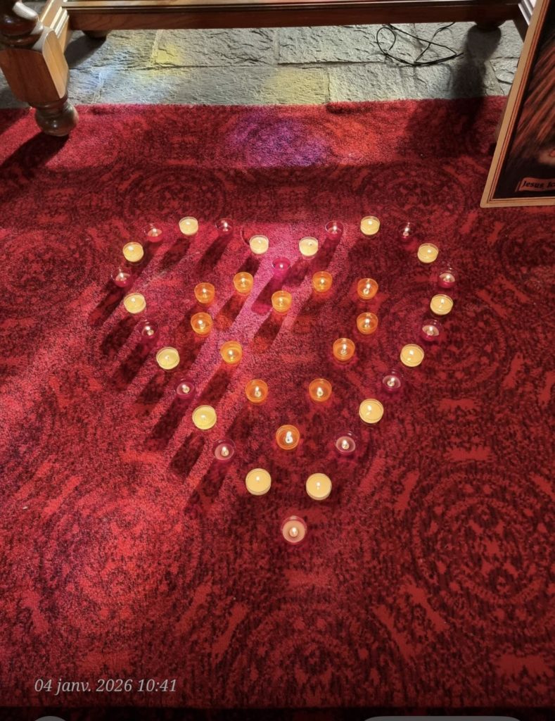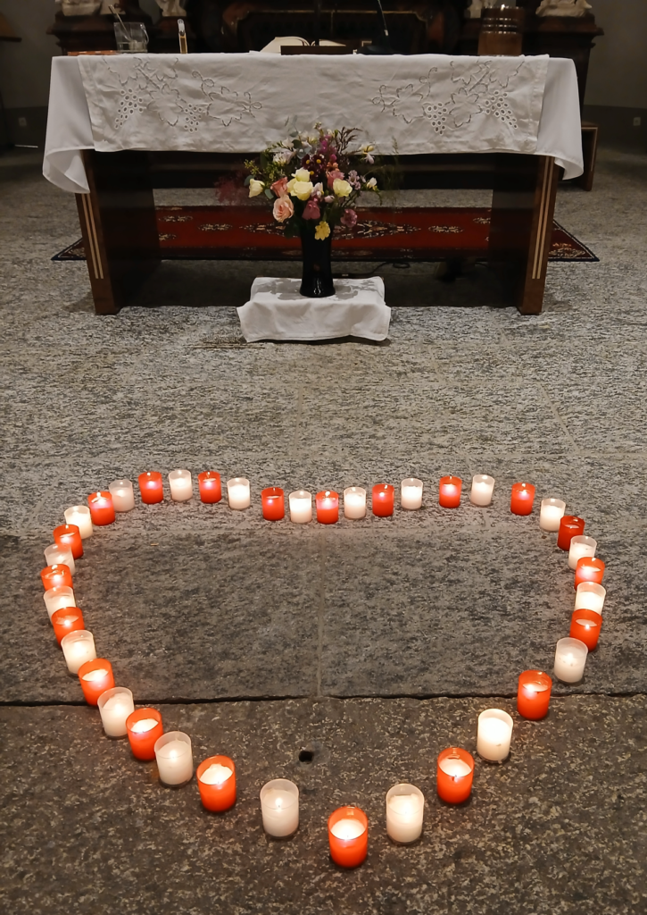 Chalais, messe et adoration où chaque personne présente a apporter sa prière, sa lumière, son coeur: