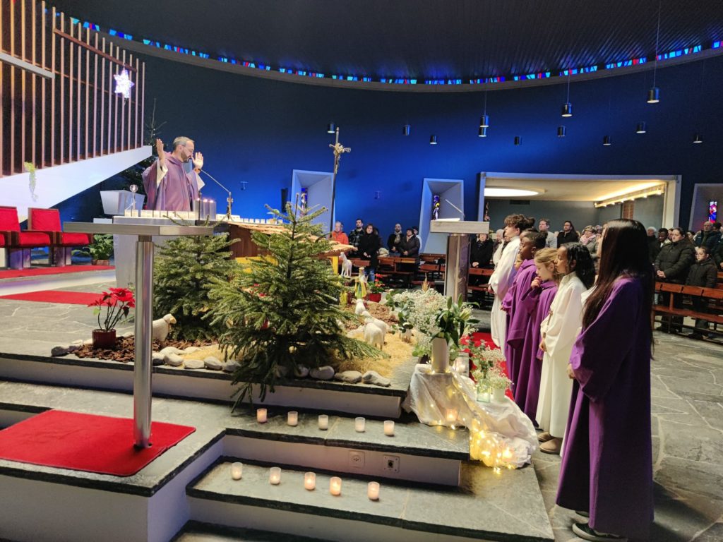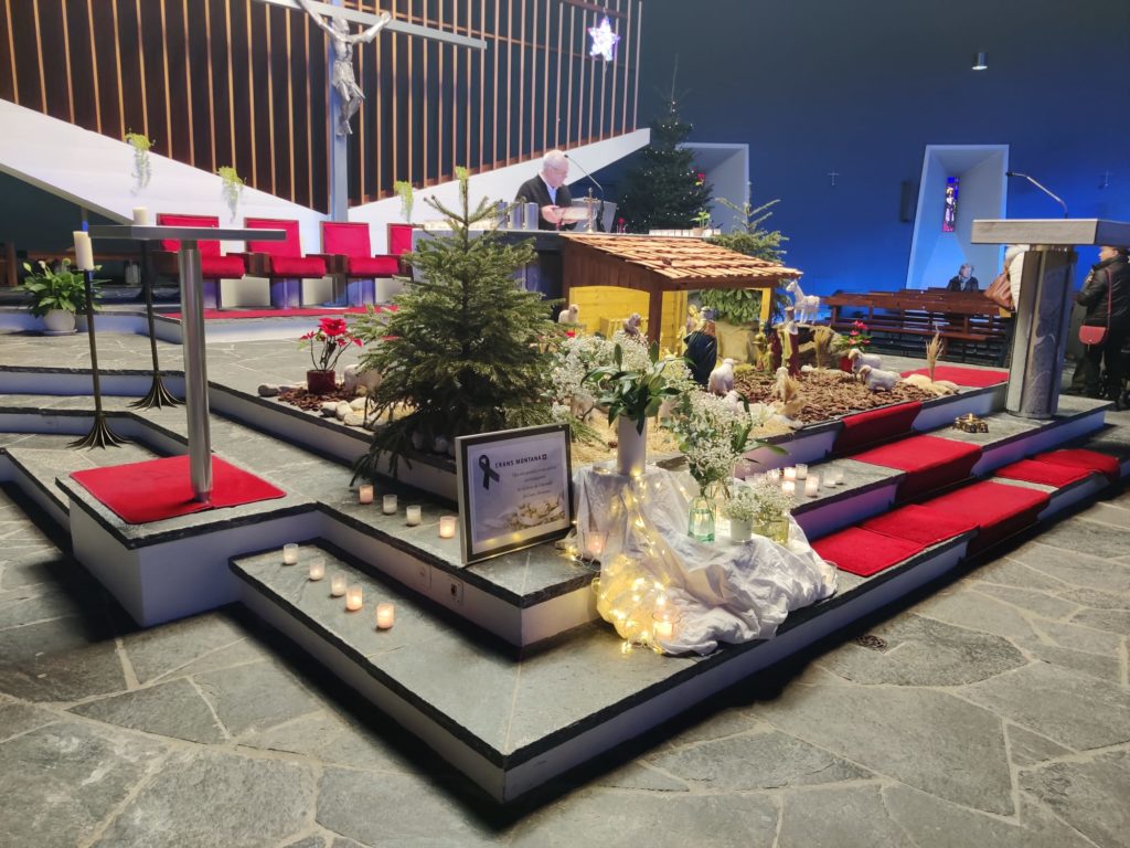 A Sierre, à l’église Ste-Croix, le dimanche 4 janvier, des lumières auprès de l’enfant-Jésus de la crèche:
